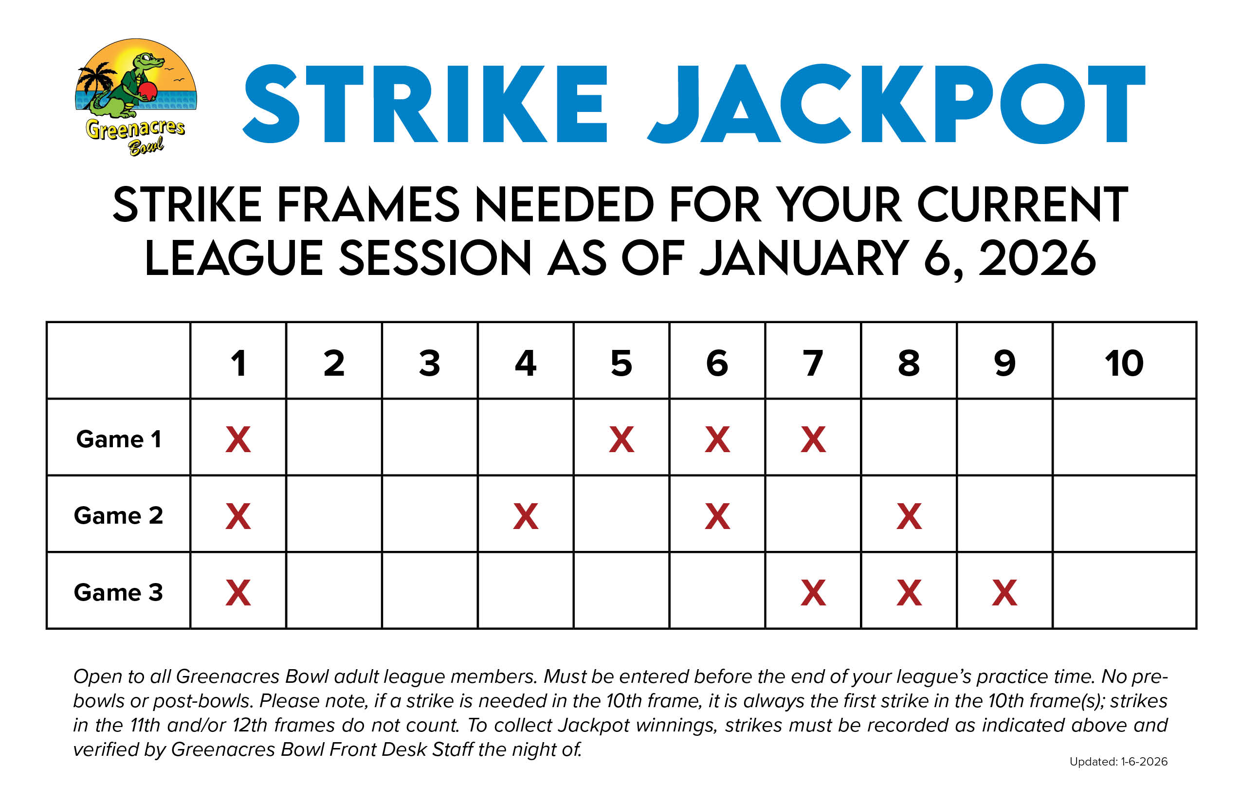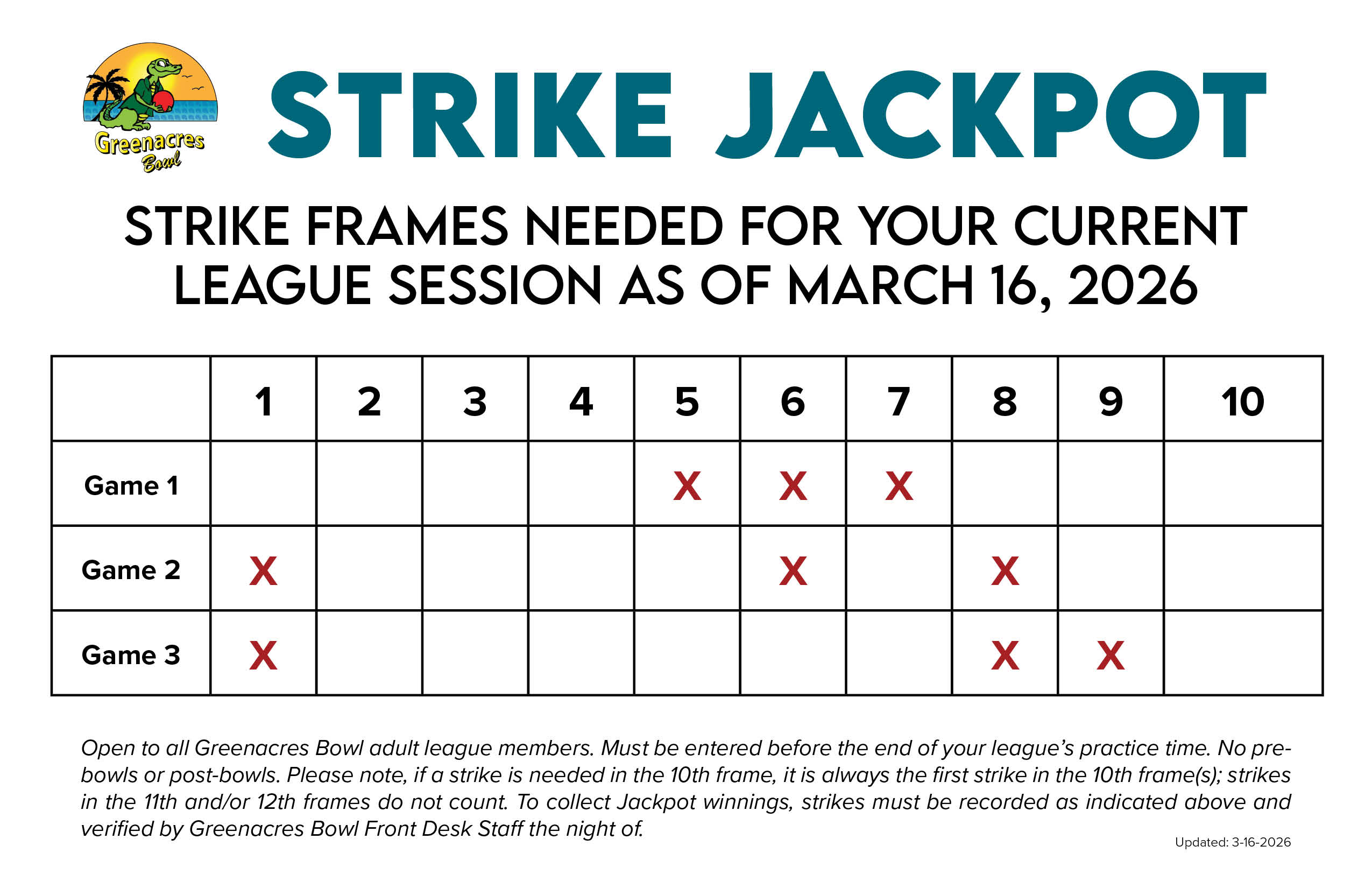 Click the image above to enlarge the Strike Jackpot frames for your league session! Please note, you may have to refresh this page to view new information.