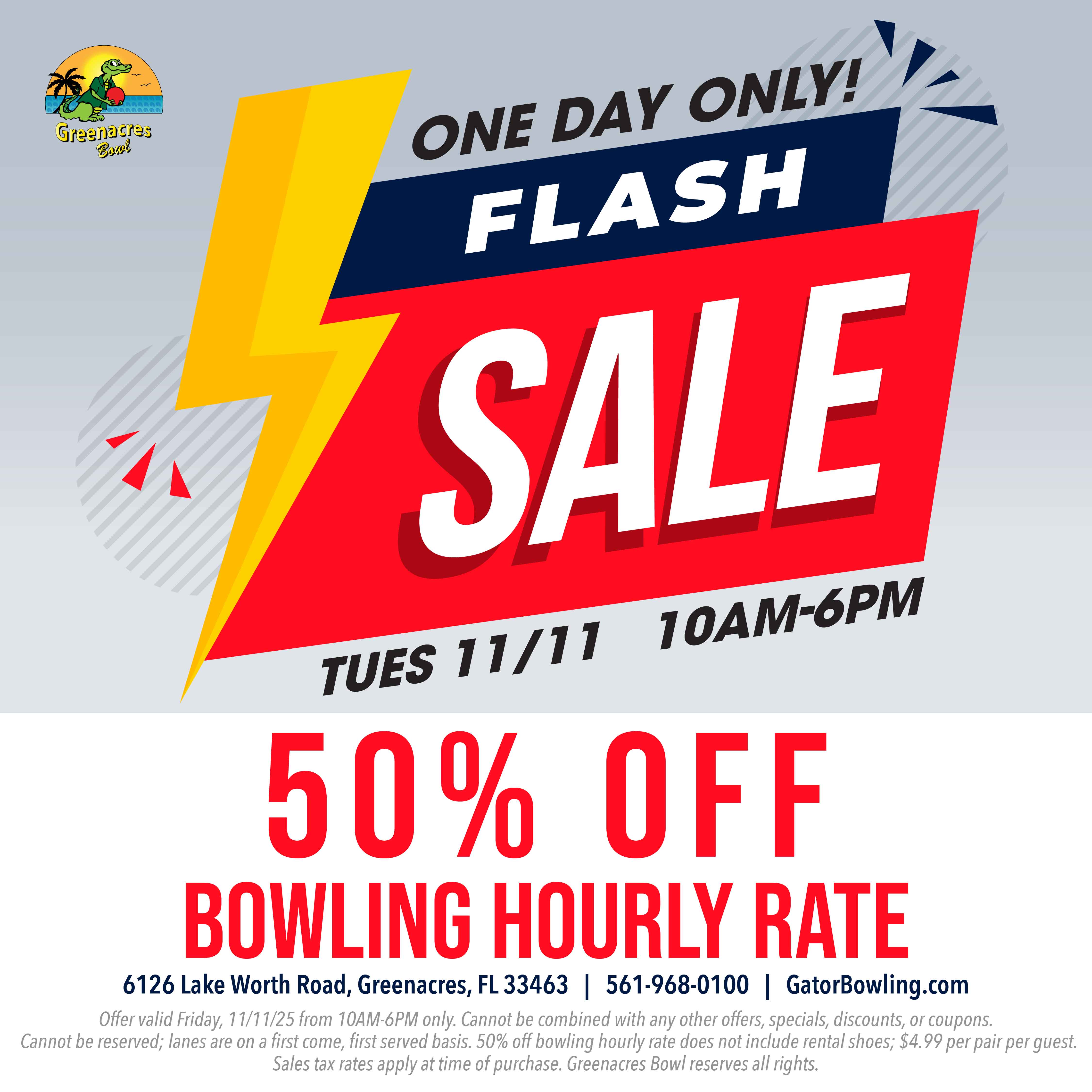 FLASH SALE - Tuesday, Novemebr 11, 2025. Enjoy 50% off hourly rate of bowling. CLICK HERE for more information!